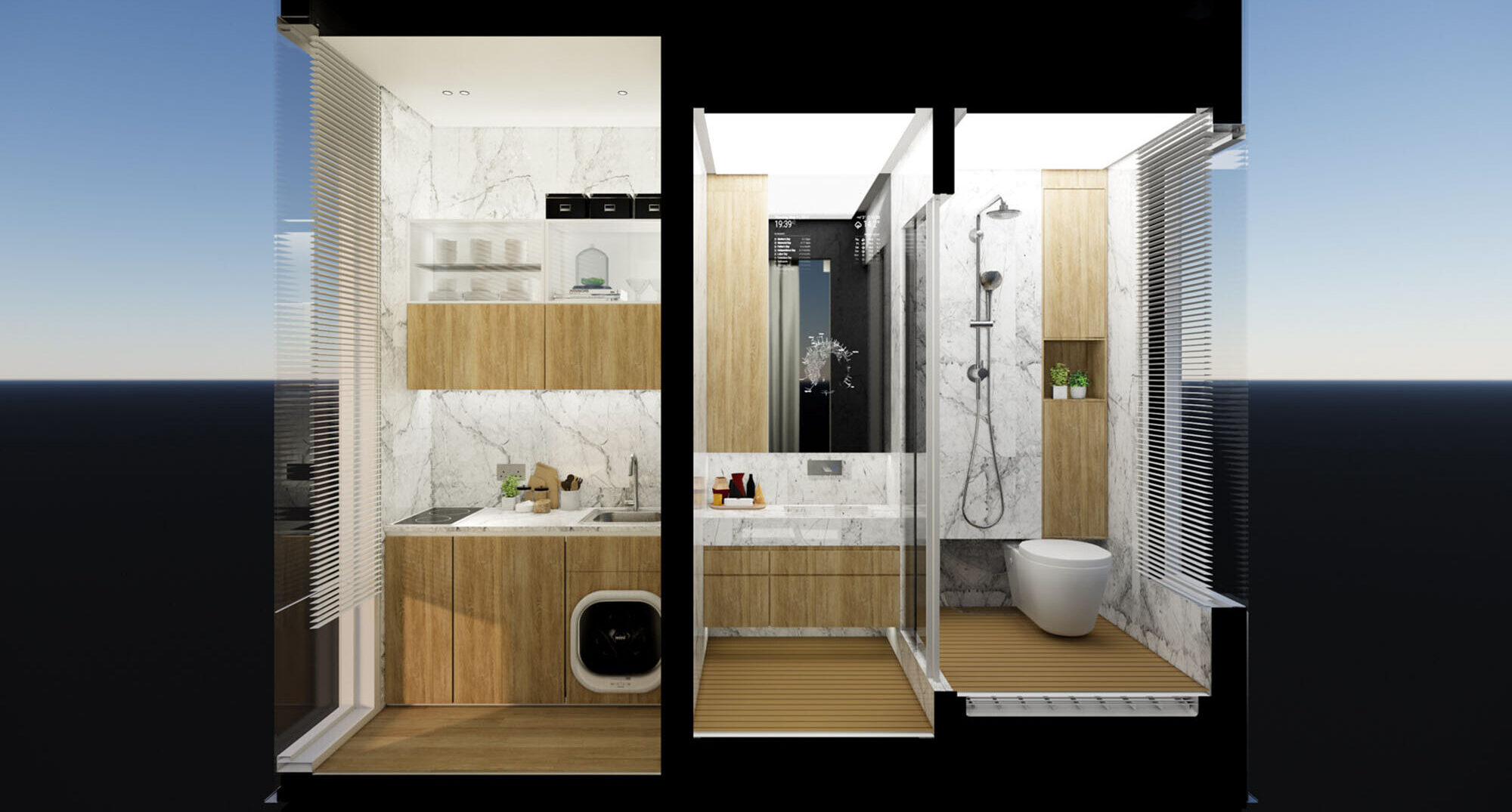 Whoever it may be, all need a private nook space to re-invent life and find a balance. Nook, helps you find the balance that you need in life. It is a completely self-content unit with Study, Bed, Wardrobes, Kitchenette, and bath spaces within. It comes with everything built-in, so no worries of trying to fit something bought out. It aims in keeping your life Simple with less clutter. Enhancements with Smart automation and completely recyclable nature, makes it Sustainable at heart.